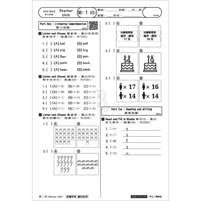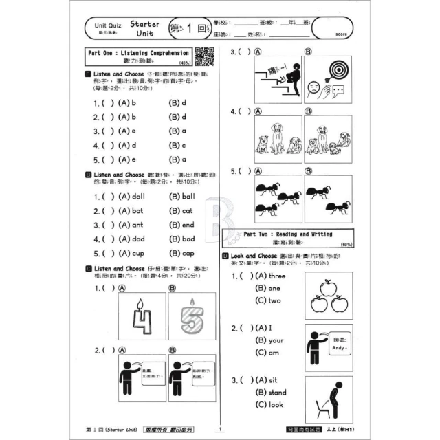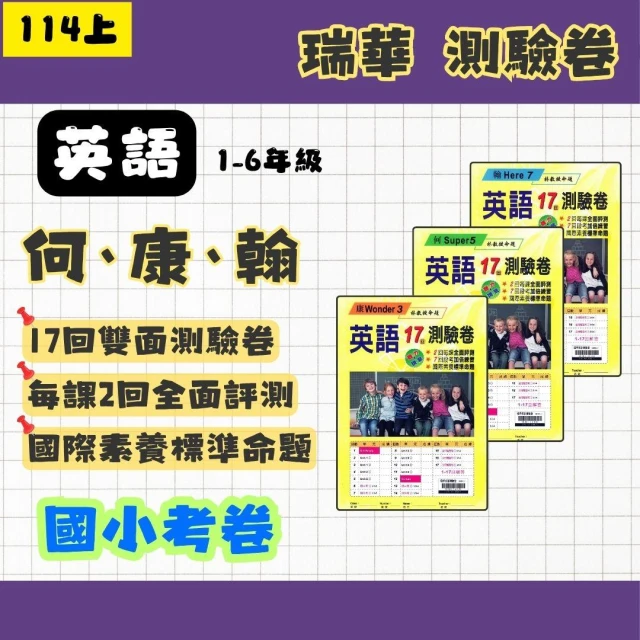 瑞華文化114上 瑞華 國小 英語 測驗卷1357 何Super、康Wonder、翰Here 3~6年級 英語考卷 國小英語