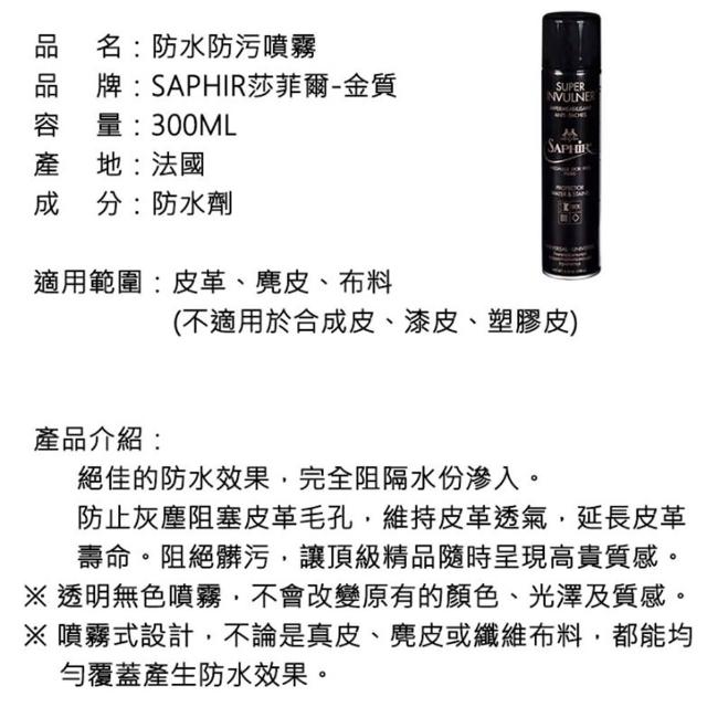PONI JOHNSAPHIR 莎菲爾-金質 防水防污噴霧 -麂皮包防水 皮衣防水 雪靴防水 300ml