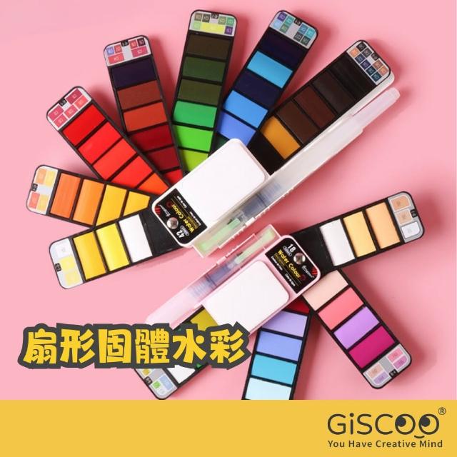 Giscoo 聚思庫固體水彩顏料組附水筆 水彩套裝贈水彩筆 美勞課美術用品 固體水彩 口袋顏料