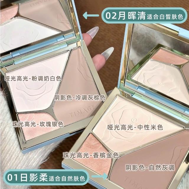 TIMAGE 彩棠現貨24H速出 TIMAGE彩棠 高光修容盤 啞光珠光提亮修容三色一體盤(提亮面部/陰影修容/立體臉部)