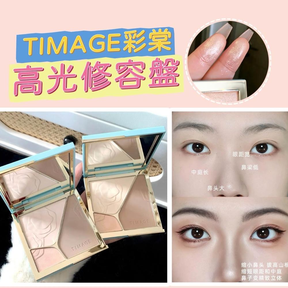 TIMAGE 彩棠現貨24H速出 TIMAGE彩棠 高光修容盤 啞光珠光提亮修容三色一體盤(提亮面部/陰影修容/立體臉部)