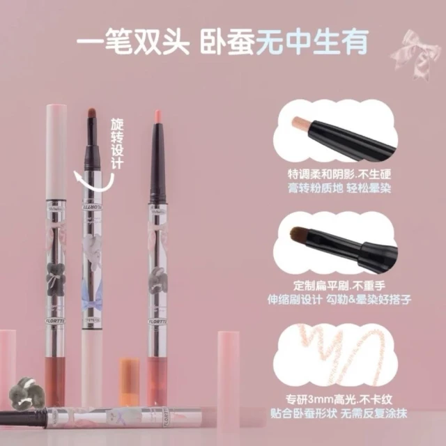FLORTTE現貨24H速出 FLORTTE花洛莉亞 雙頭臥蠶筆 陰影筆眼線膠筆下至高光提亮持久自然(臥蠶筆/陰影筆/眼線膠筆)