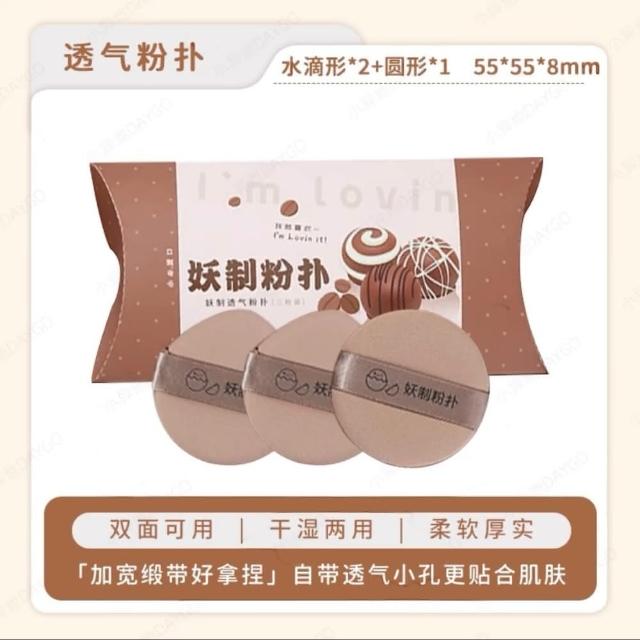 現貨24H速出 妖制 粉撲 一盒三入 巧克力派 蛋黃派 菠蘿派 乾濕兩用不吃粉(乾濕兩用/化妝海綿)