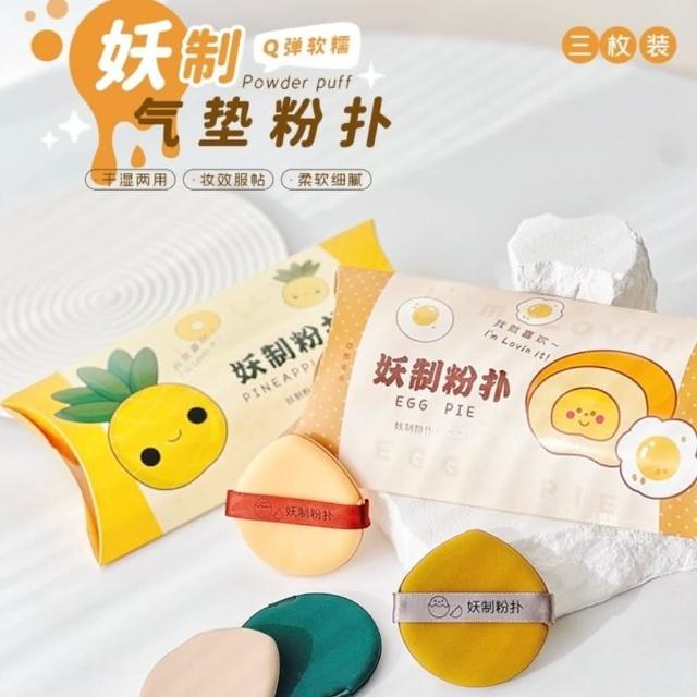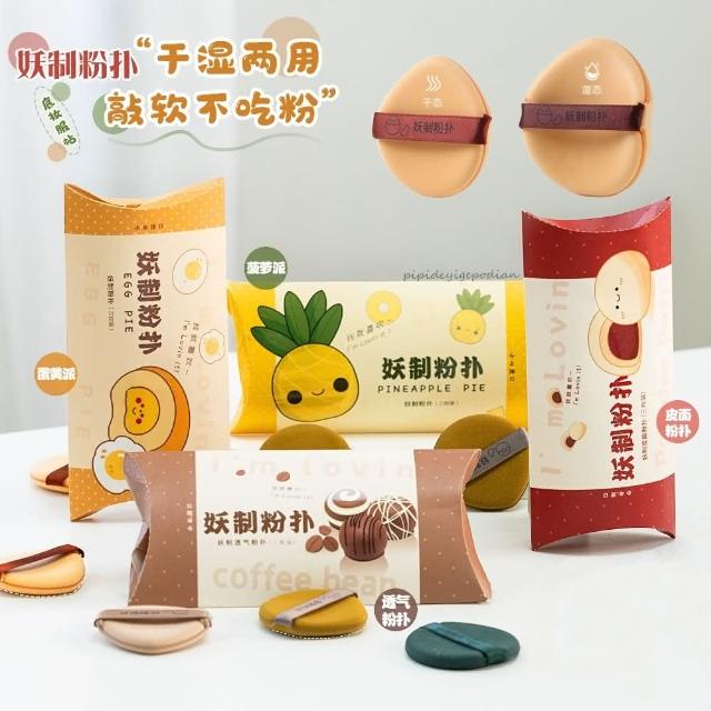 現貨24H速出 妖制 粉撲 一盒三入 巧克力派 蛋黃派 菠蘿派 乾濕兩用不吃粉(乾濕兩用/化妝海綿)