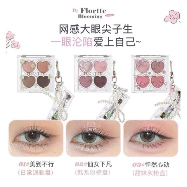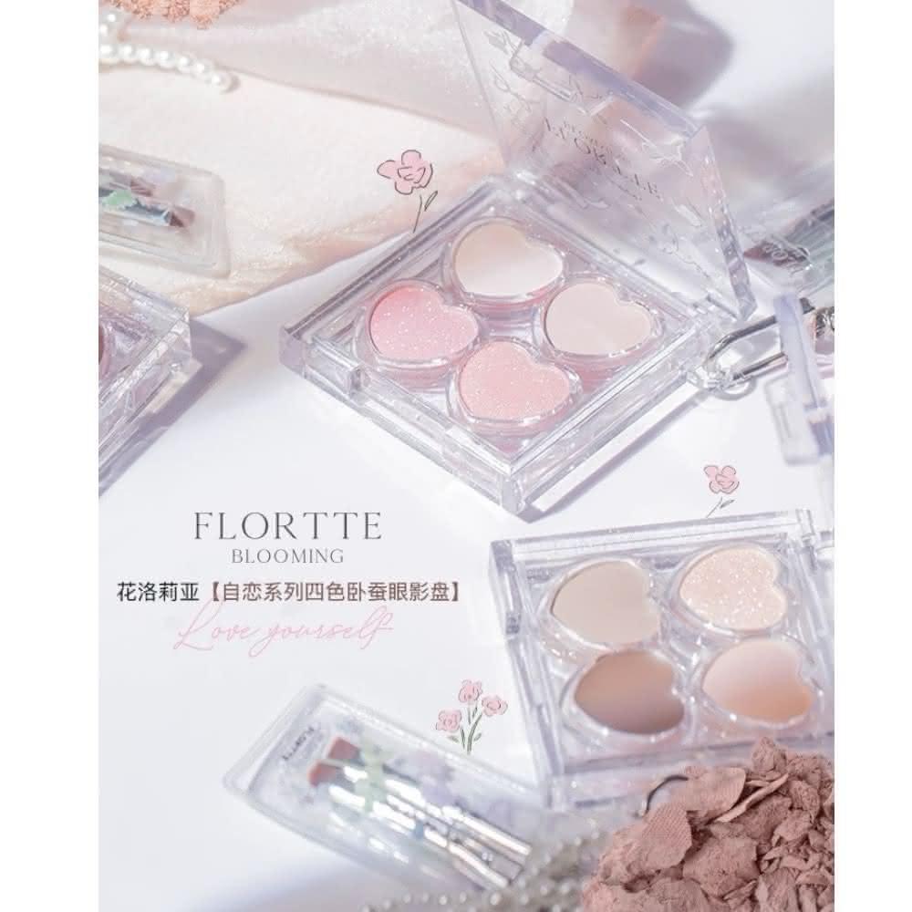 FLORTTE現貨24H速出 花洛莉亞 自戀系列 四色臥蠶眼影盤 自帶刷具 四色臥蠶提亮多用盤 眼線眼影綜合盤(眼影+臥蠶一體盤)