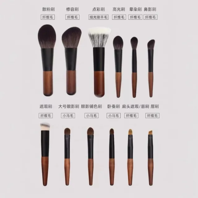 現貨24H速出 12支迷你化妝刷具 套組 動物毛刷具 便攜短桿羊毛小馬毛眼影刷點彩刷旅行美刷化妝工具套裝