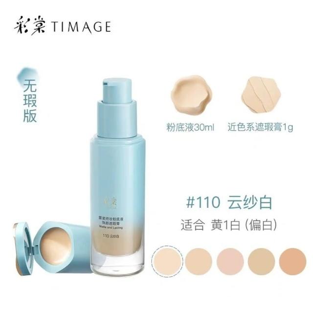 TIMAGE 彩棠現貨24H速出 TIMAGE彩棠 小圓管持妝粉底液 遮瑕膏一件式 自然霧面持久不脫妝30ml無瑕