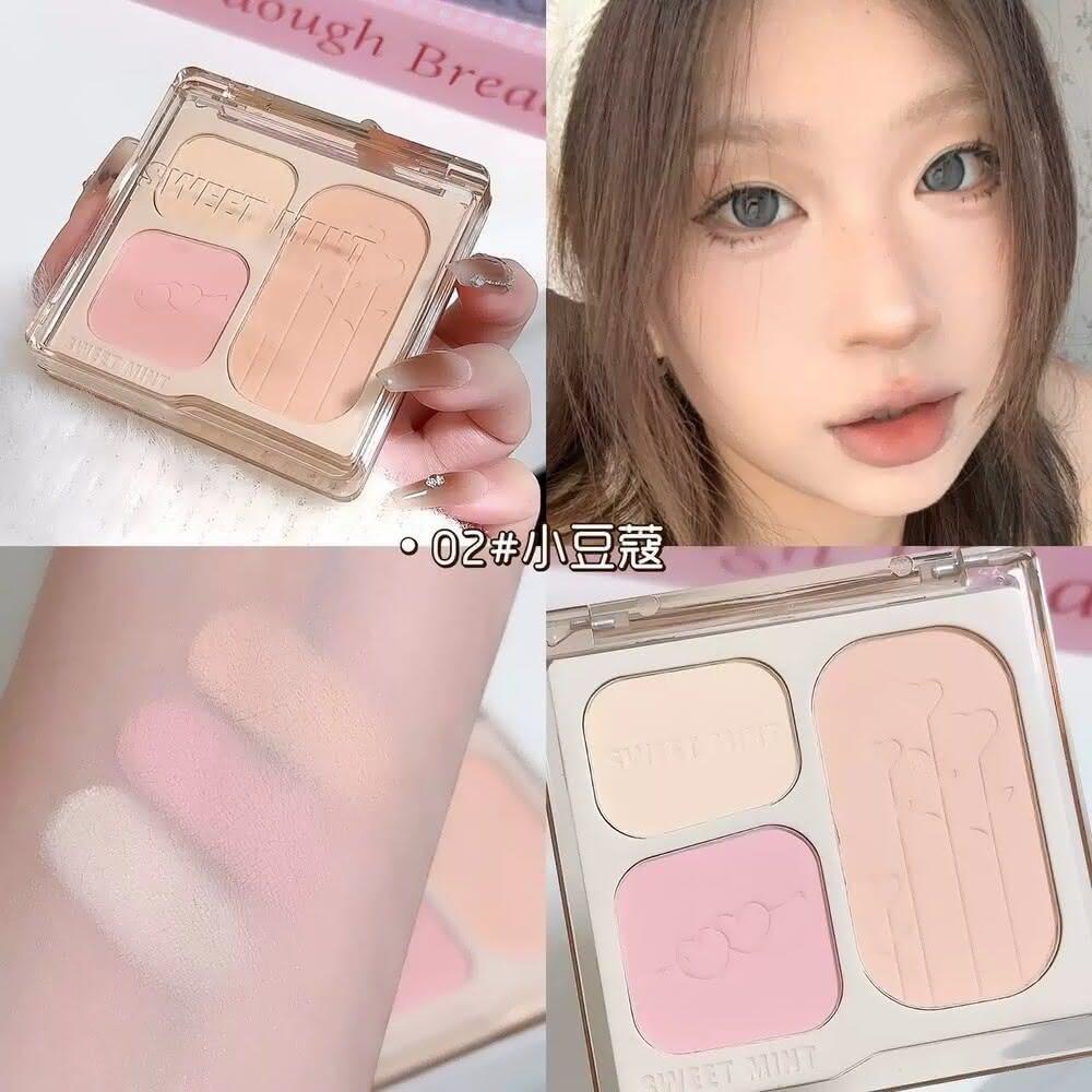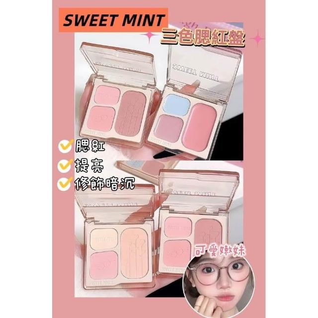 現貨24H速出 sweet mint 三色腮紅盤 膨脹色收縮色腮藍腮紅膏 提亮面中懶人盤