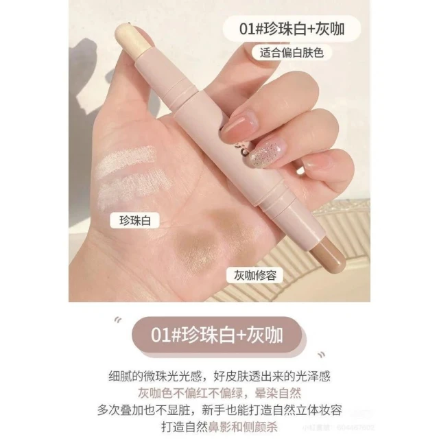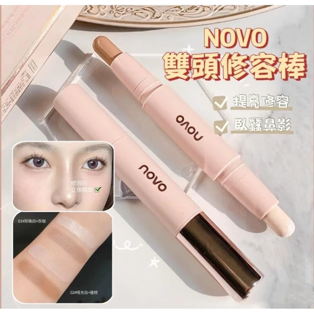 現貨24H速出 NOVO 高光修容棒 雙頭兩用一體筆啞光提亮臉部面部鼻影陰影遮瑕臥蠶