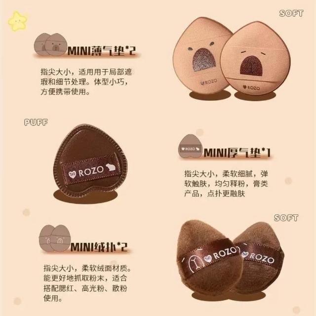 台灣現貨 ROZO 卡皮巴拉崽崽手指粉撲 mini粉撲 拇指粉撲 植絨粉撲 乾濕兩用不吃粉 粉底液遮瑕化妝散粉美妝蛋