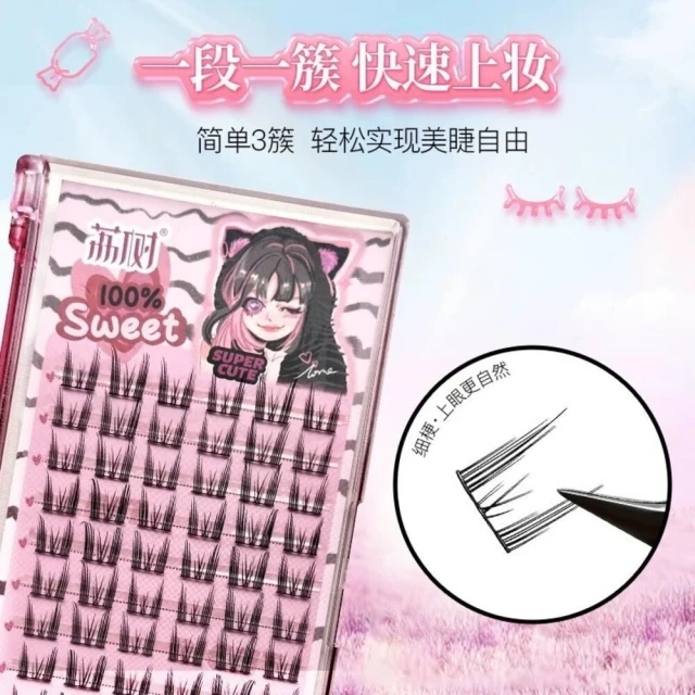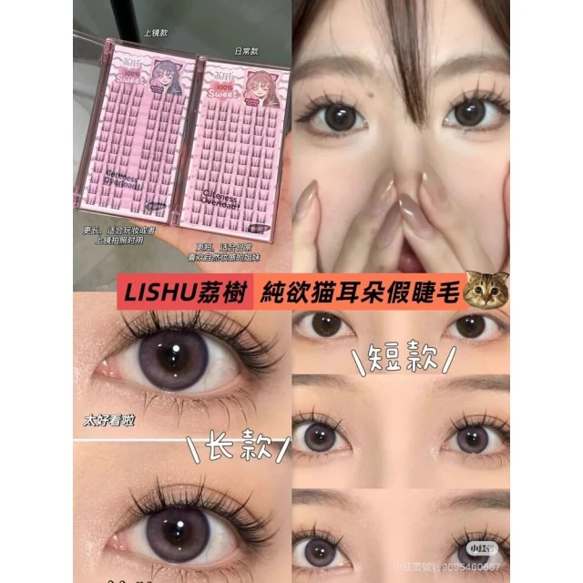 現貨24H速出 LISHU荔樹 純欲貓耳朵假睫毛 自然仿真仙子毛新手初學者素顏單簇眼睫毛