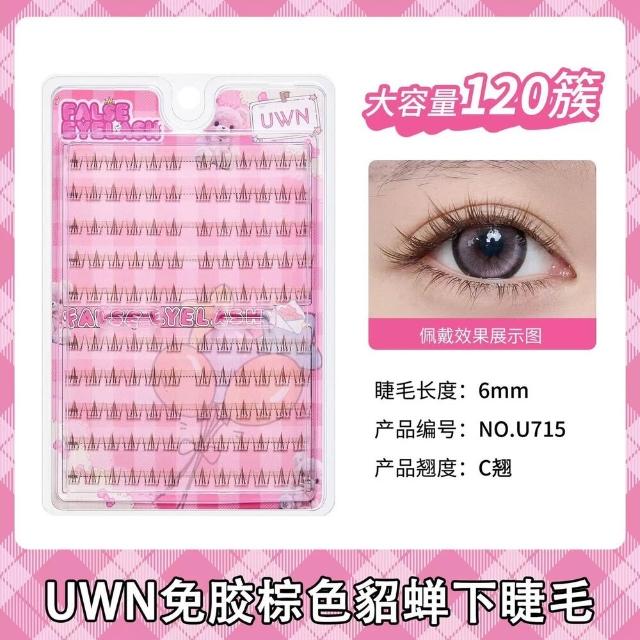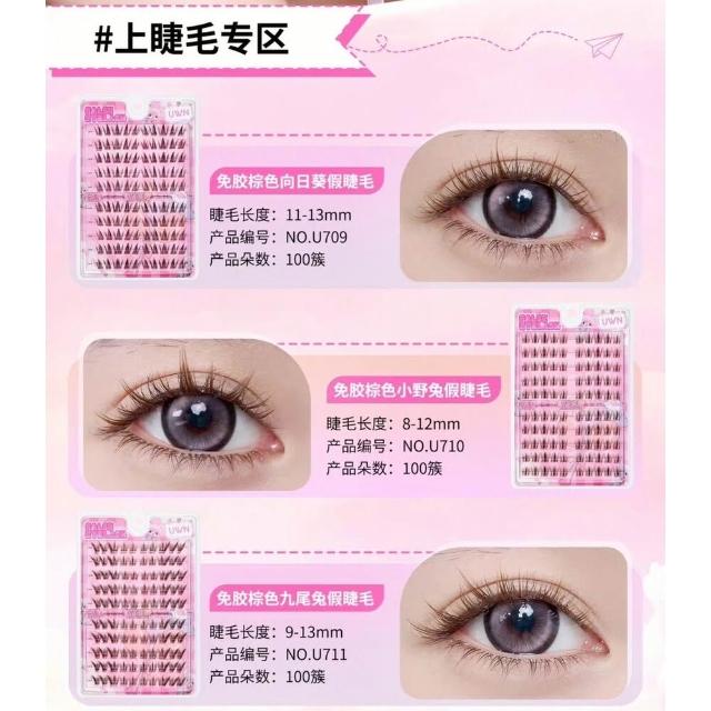 現貨24H速出 UWN 「棕色」假睫毛 免膠假睫毛 免膠免卸自黏 太陽花自然媽生感cos玩妝 透明梗自粘假睫毛眼睫毛