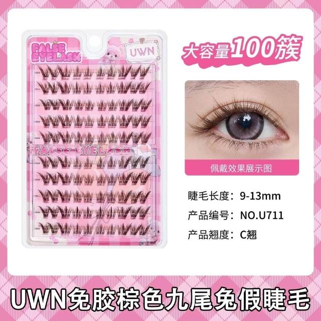 現貨24H速出 UWN 「棕色」假睫毛 免膠假睫毛 免膠免卸自黏 太陽花自然媽生感cos玩妝 透明梗自粘假睫毛眼睫毛