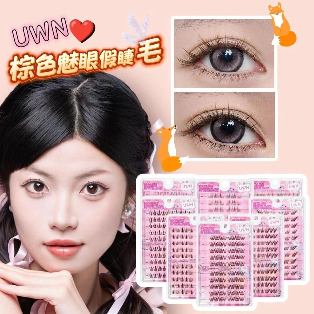現貨24H速出 UWN 「棕色」假睫毛 免膠假睫毛 免膠免卸自黏 太陽花自然媽生感cos玩妝 透明梗自粘假睫毛眼睫毛