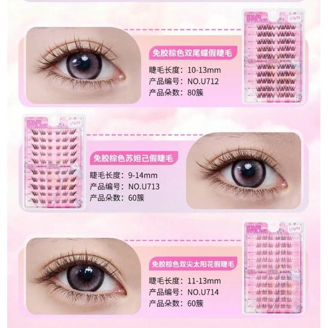現貨24H速出 UWN 「棕色」假睫毛 免膠假睫毛 免膠免卸自黏 太陽花自然媽生感cos玩妝 透明梗自粘假睫毛眼睫毛