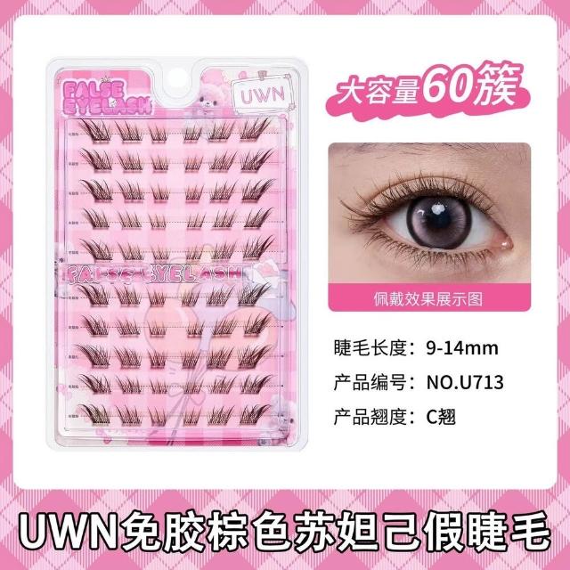現貨24H速出 UWN 「棕色」假睫毛 免膠假睫毛 免膠免卸自黏 太陽花自然媽生感cos玩妝 透明梗自粘假睫毛眼睫毛