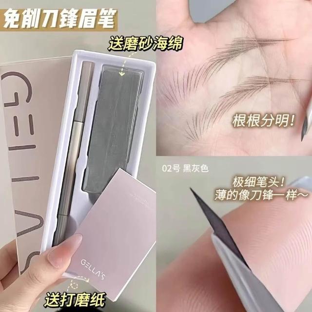 現貨24H速出 gellas 刀鋒眉筆 雙頭眉筆 根根分明 野生眉 耐水耐汗 持久不易脫色 不易暈染 眉粉 眉膏 眉刷
