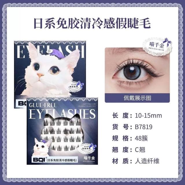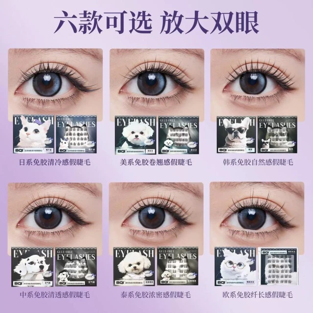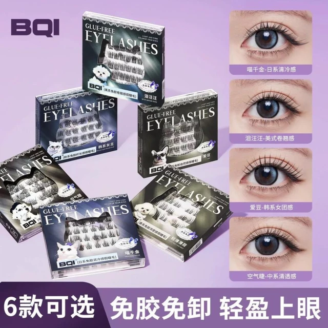 現貨24H速出 BQI 日系免膠清冷感假睫毛 免膠水 自然卷翹女團濃密 單簇分段式 上鏡款上睫毛 自粘眼睫毛 免膠免卸睫