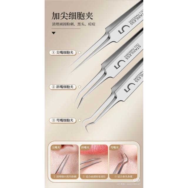 現貨24H速出 美容院專用 粉刺夾 細胞夾 套組 超尖頭 彎夾/斜夾/尖夾 毛孔清潔 粉刺閉口夾 黑頭夾 升級版 美容用