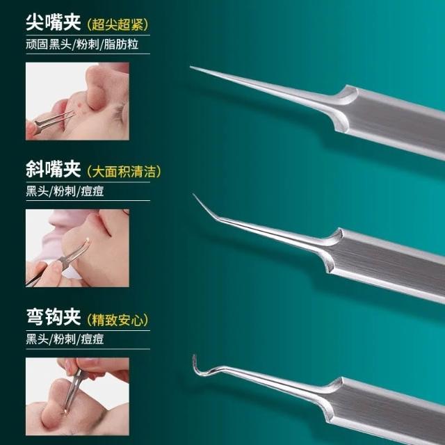 現貨24H速出 美容院專用 粉刺夾 細胞夾 套組 超尖頭 彎夾/斜夾/尖夾 毛孔清潔 粉刺閉口夾 黑頭夾 升級版 美容用