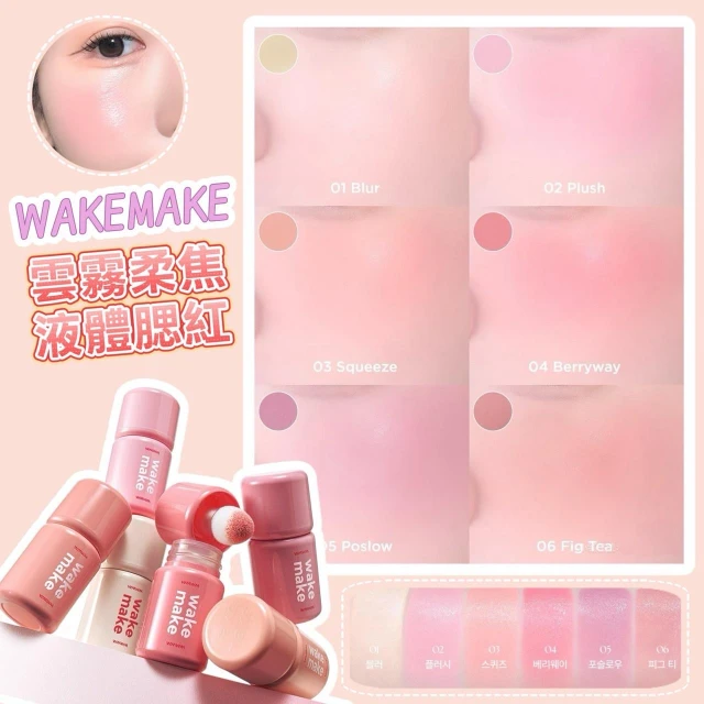 WAKEMAKE現貨24H速出 韓國WAKEMAKE 雲霧柔焦液體腮紅 修飾修容提亮氣色 奶油感 粉嫩