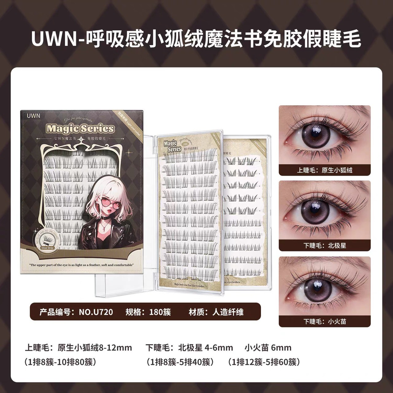 現貨24H速出 UWN 呼吸感小狐絨魔法書 免膠假睫毛 自粘仿真自然上鏡媽生感 20排大容量 免膠免卸 假睫毛 眼睫毛