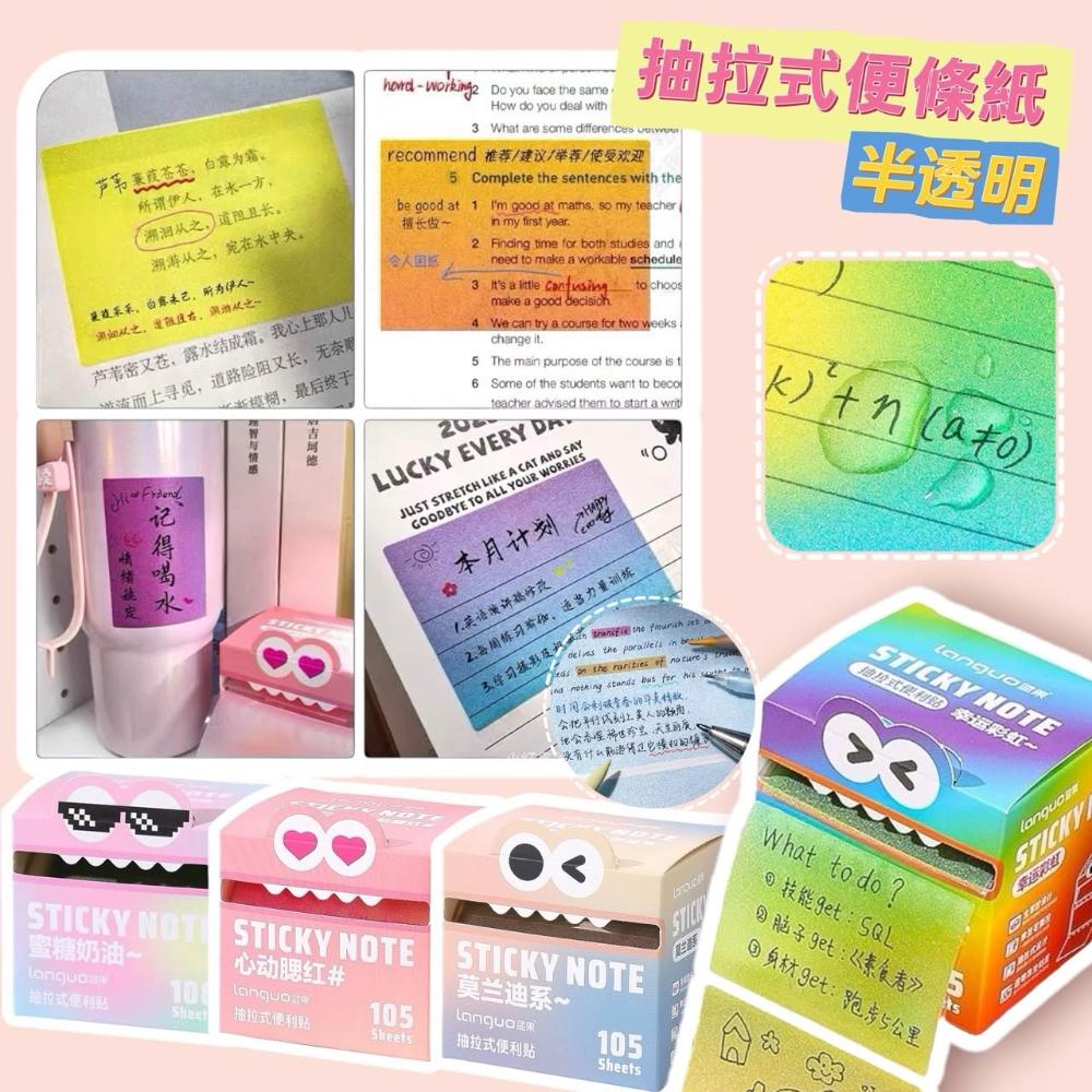 現貨24H速出 半透明 抽拉式便利貼 便條紙 便利貼 重點標籤 留言紙條 筆記小紙條 彩色紙條 文具用品