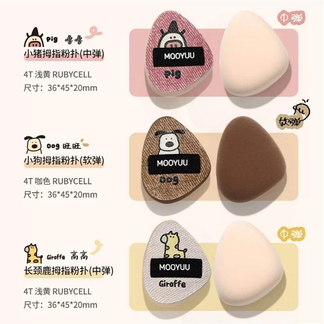 現貨24H速出 MOOYUU茉語 萌寵拇指粉撲 三入 細節迷你粉撲 化妝刷具 手指遮瑕氣墊粉撲 指腹定妝便攜 化妝海綿