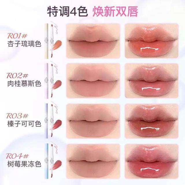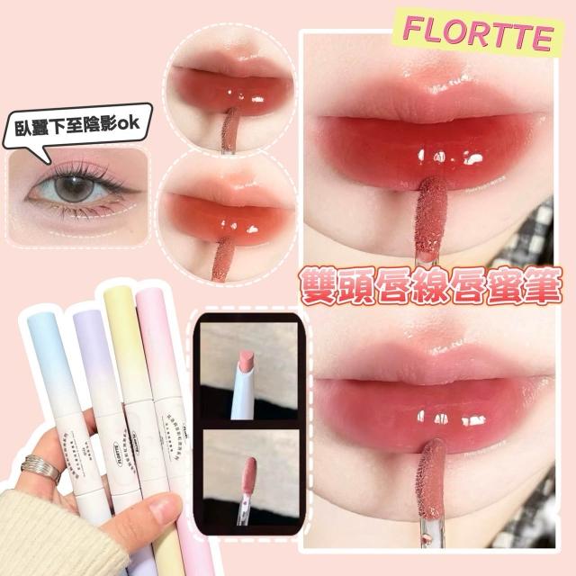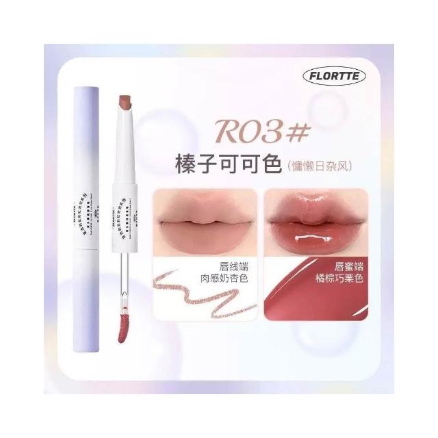 FLORTTE現貨24H速出 FLORTTE花洛莉亞 彩虹泡泡 雙頭唇線筆 唇蜜筆 唇筆唇釉口紅二合一 裸色鏡面 勾勒唇形 打底唇膏