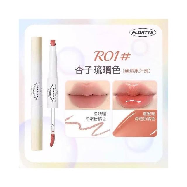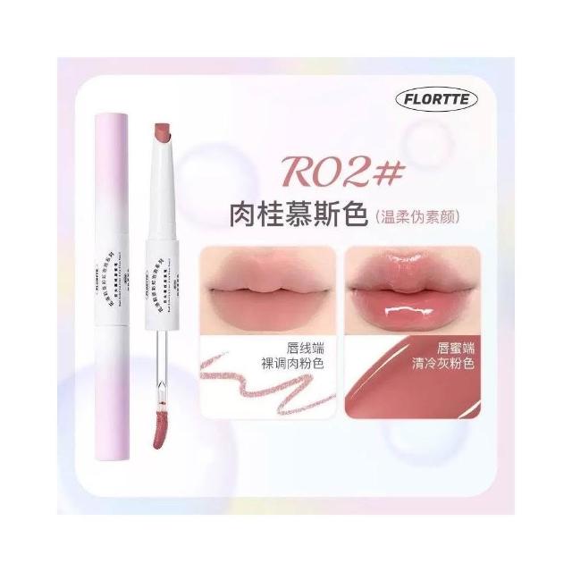 FLORTTE現貨24H速出 FLORTTE花洛莉亞 彩虹泡泡 雙頭唇線筆 唇蜜筆 唇筆唇釉口紅二合一 裸色鏡面 勾勒唇形 打底唇膏