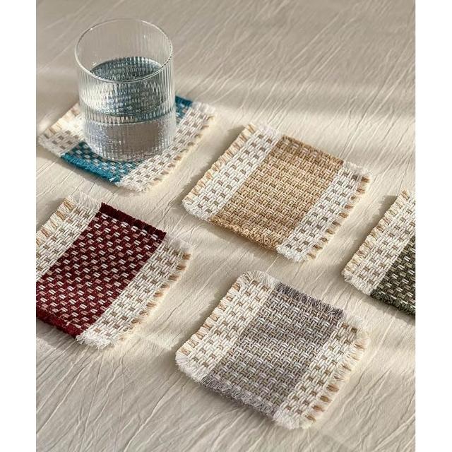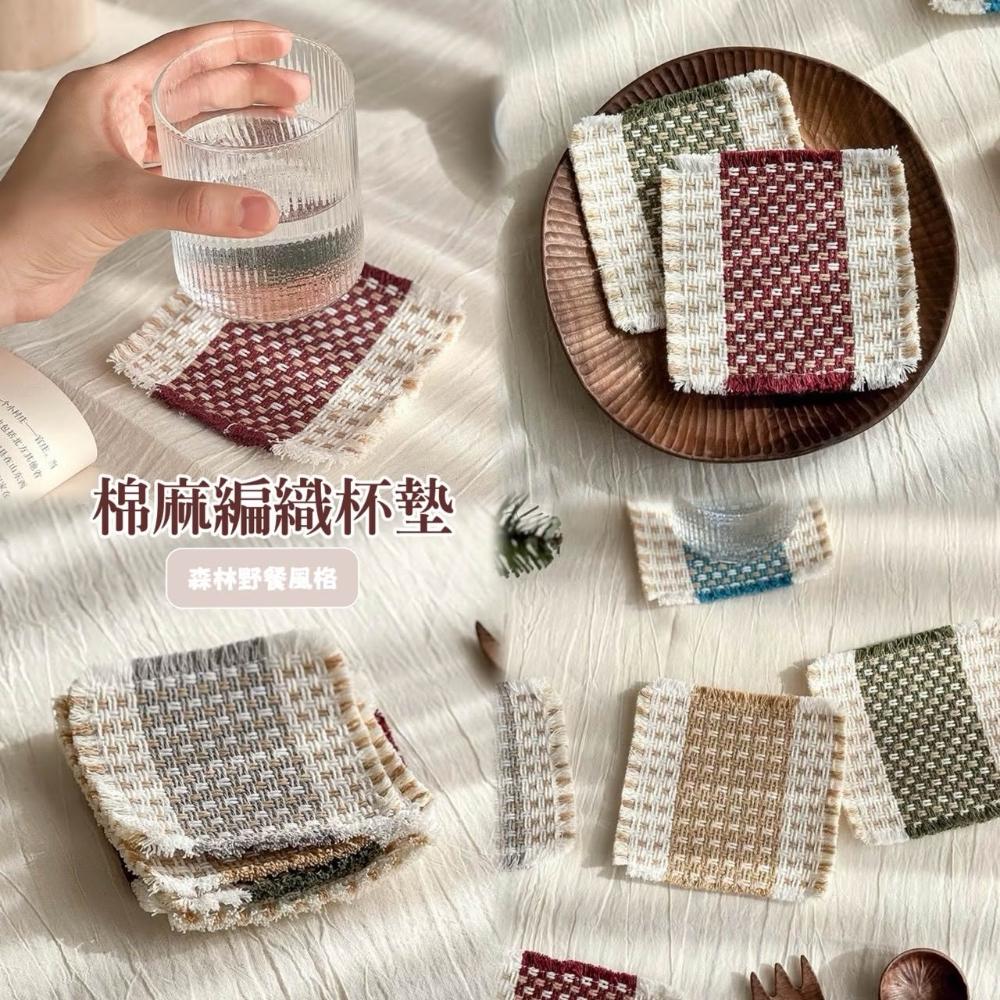 現貨24H速出 棉麻編織杯墊 拚色拼布杯墊 森林野餐風 生活儀式感 文青杯墊 拍攝墊子 拍照道具
