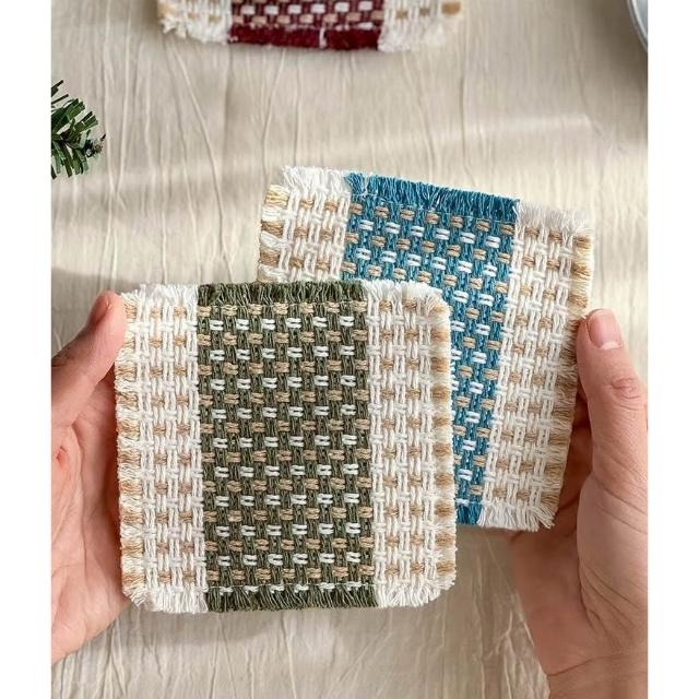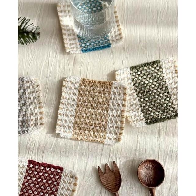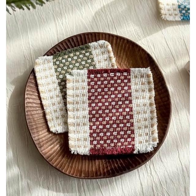 現貨24H速出 棉麻編織杯墊 拚色拼布杯墊 森林野餐風 生活儀式感 文青杯墊 拍攝墊子 拍照道具