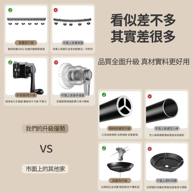 匠藝家居手動升降晾衣架 家用晾衣桿 自動晾曬衣架 陽台晾衣桿 多幹多功能曬衣架 304不鏽鋼繩 升級母嬰橫桿