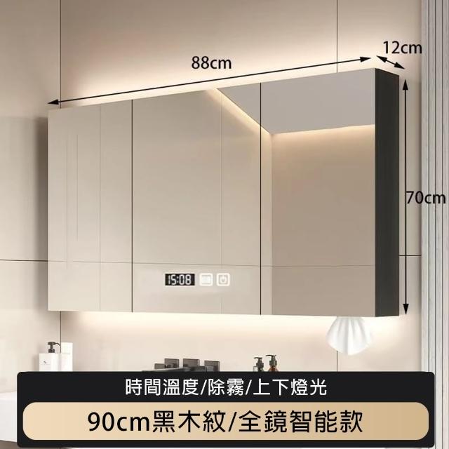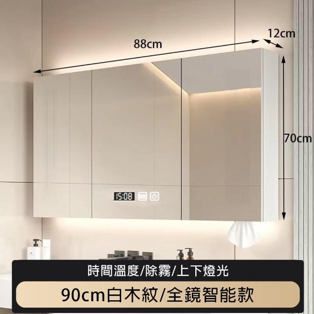 匠藝家居全鏡智能浴櫃 浴室鏡櫃(90公分 實木板材 高清除霧鏡面 三色燈光 時間/日期/溫度顯示)