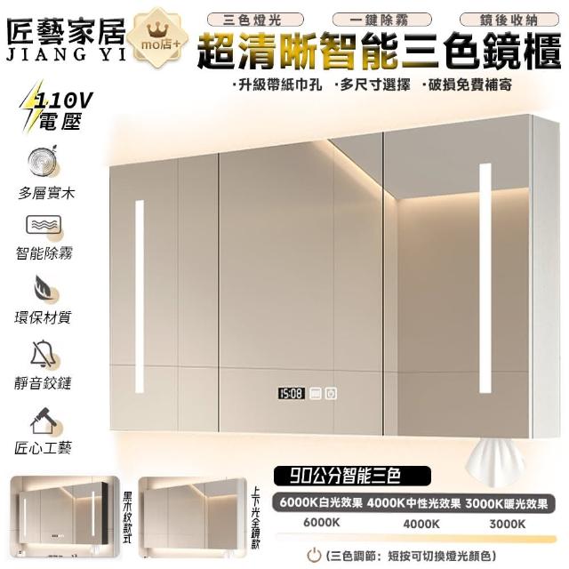 匠藝家居全鏡智能浴櫃 浴室鏡櫃(90公分 實木板材 高清除霧鏡面 三色燈光 時間/日期/溫度顯示)