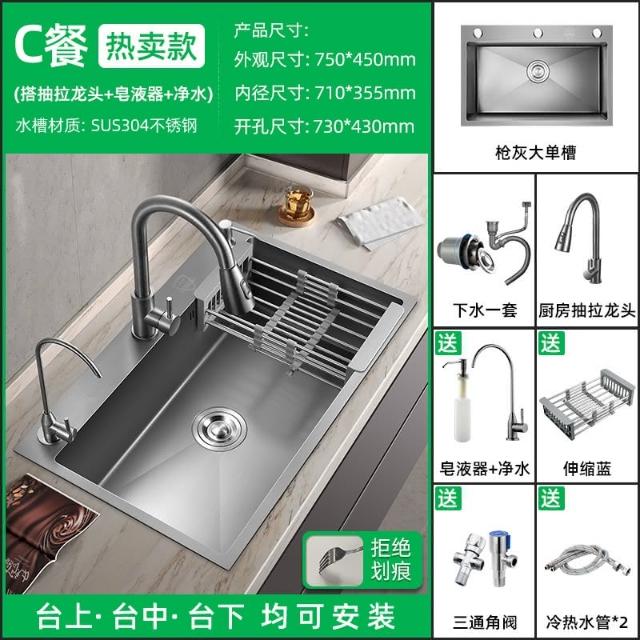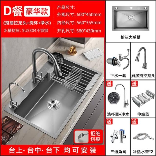 匠藝家居槍灰色納米水槽 手工納米大單槽 廚房洗手槽 304食品級不鏽鋼 納米抗菌抗污 德國工藝 一體成型