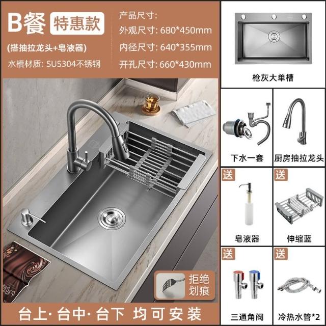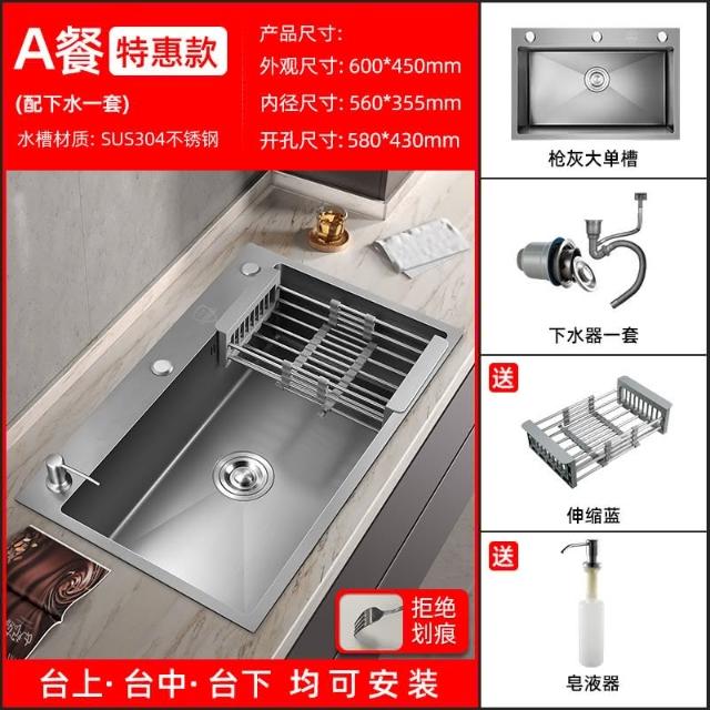 匠藝家居槍灰色納米水槽 手工納米大單槽 廚房洗手槽 304食品級不鏽鋼 納米抗菌抗污 德國工藝 一體成型