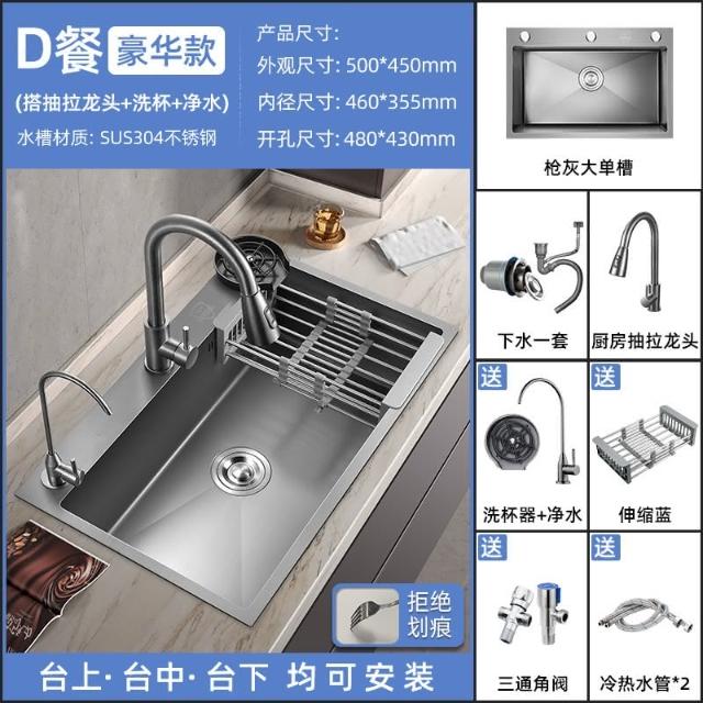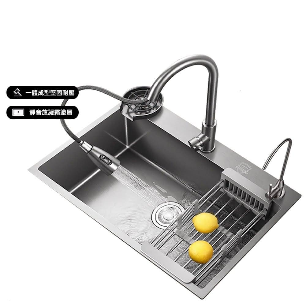 匠藝家居槍灰色納米水槽 手工納米大單槽 廚房洗手槽 304食品級不鏽鋼 納米抗菌抗污 德國工藝 一體成型