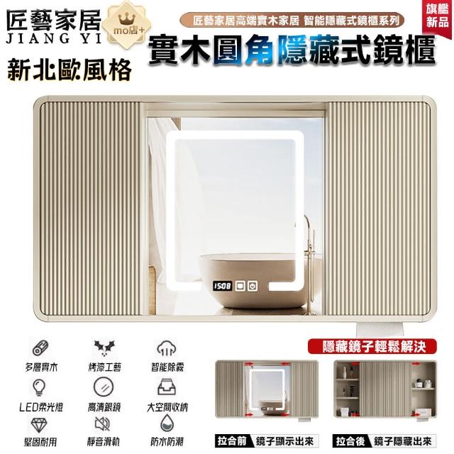 匠藝家居圓弧角隱藏式智能鏡櫃 浴室鏡櫃 掛牆式鏡面櫃(80公分推拉隱藏 智能三色補光燈 304不鏽鋼鉸鏈)