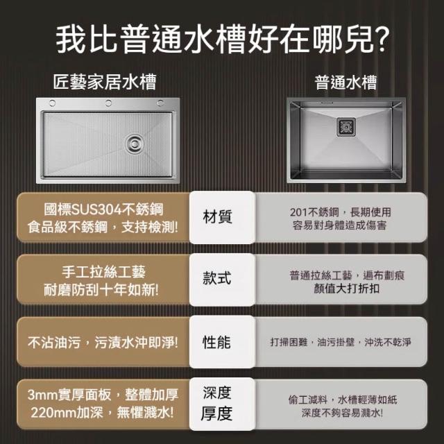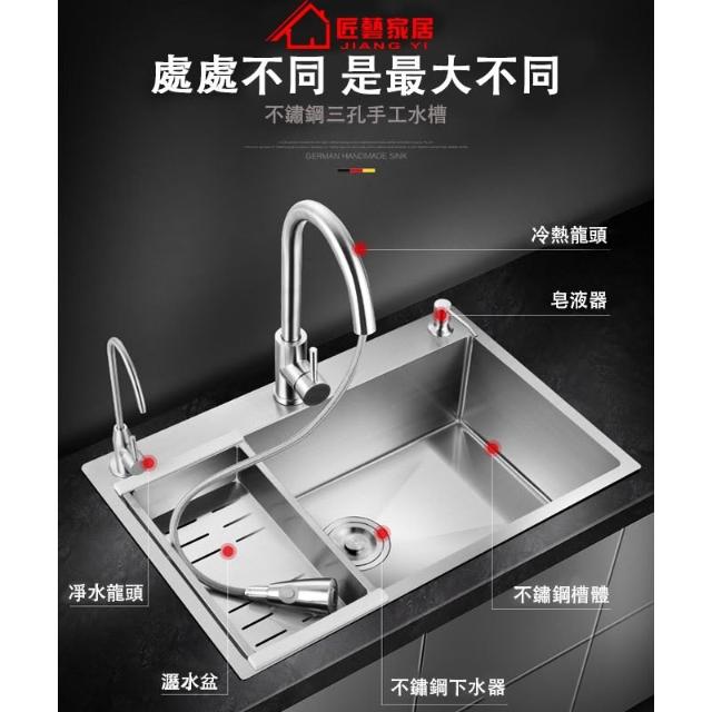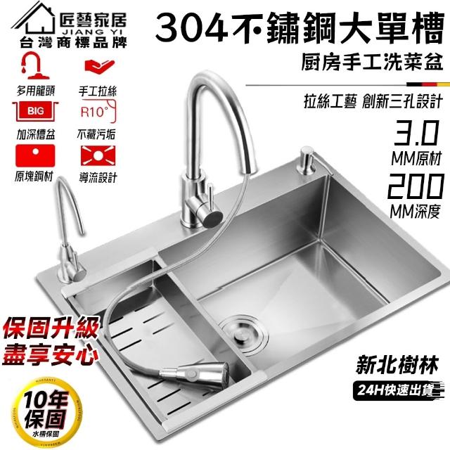 匠藝家居304不鏽鋼三孔大單槽 水槽 廚房水槽 不鏽鋼水槽 流理台 洗碗槽 手工拉絲德國工藝