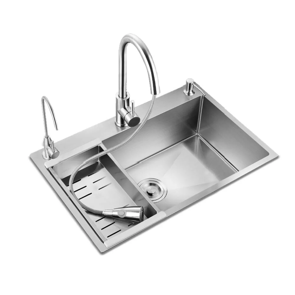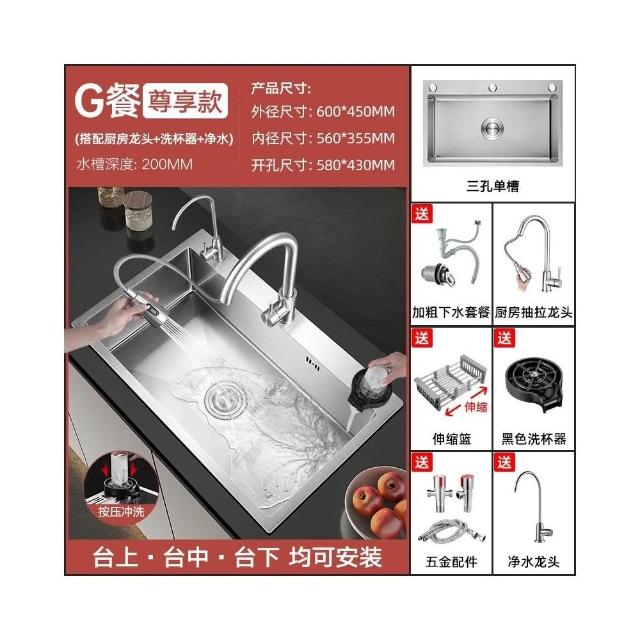 匠藝家居304不鏽鋼三孔大單槽 水槽 廚房水槽 不鏽鋼水槽 流理台 洗碗槽 手工拉絲德國工藝