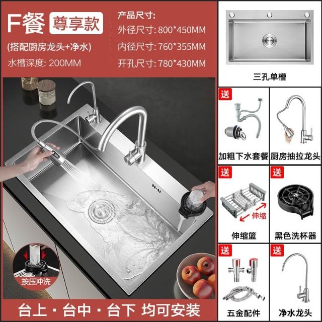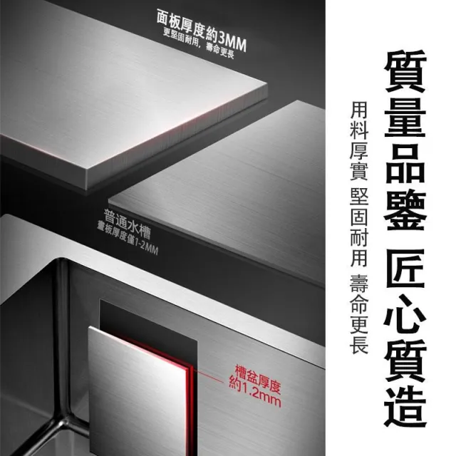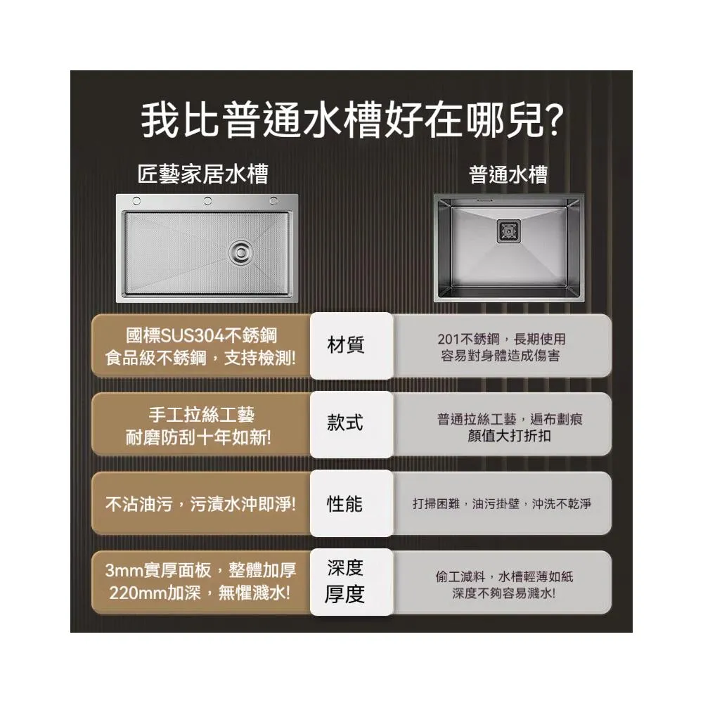 匠藝家居304不鏽鋼三孔大單槽 水槽 廚房水槽 不鏽鋼水槽 流理台 洗碗槽 手工拉絲德國工藝