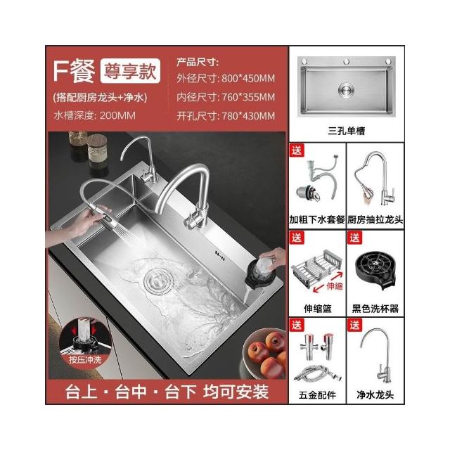 匠藝家居304不鏽鋼三孔大單槽 水槽 廚房水槽 不鏽鋼水槽 流理台 洗碗槽 手工拉絲德國工藝