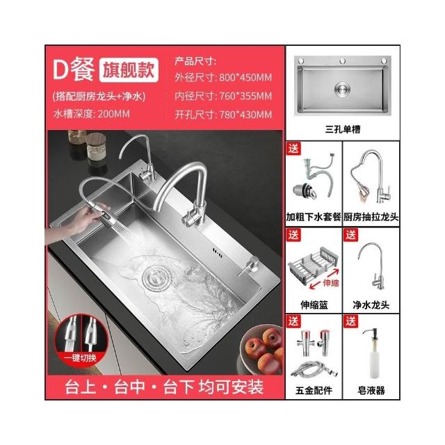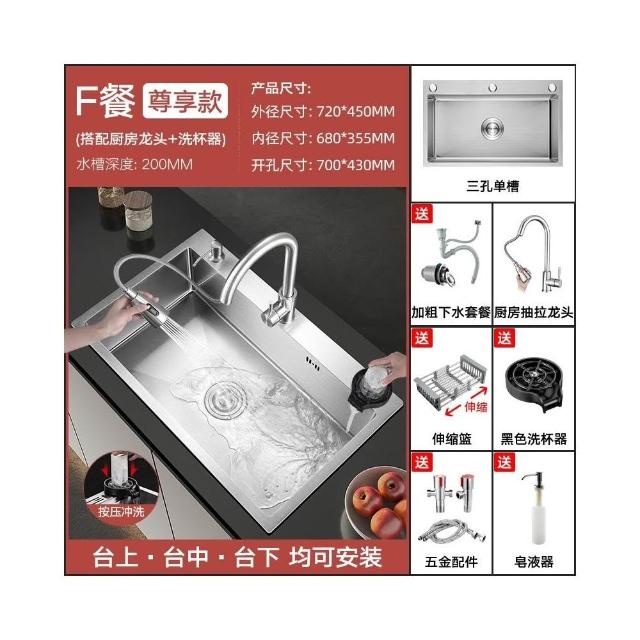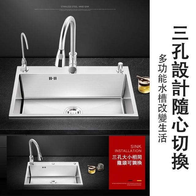 匠藝家居304不鏽鋼三孔大單槽 水槽 廚房水槽 不鏽鋼水槽 流理台 洗碗槽 手工拉絲德國工藝