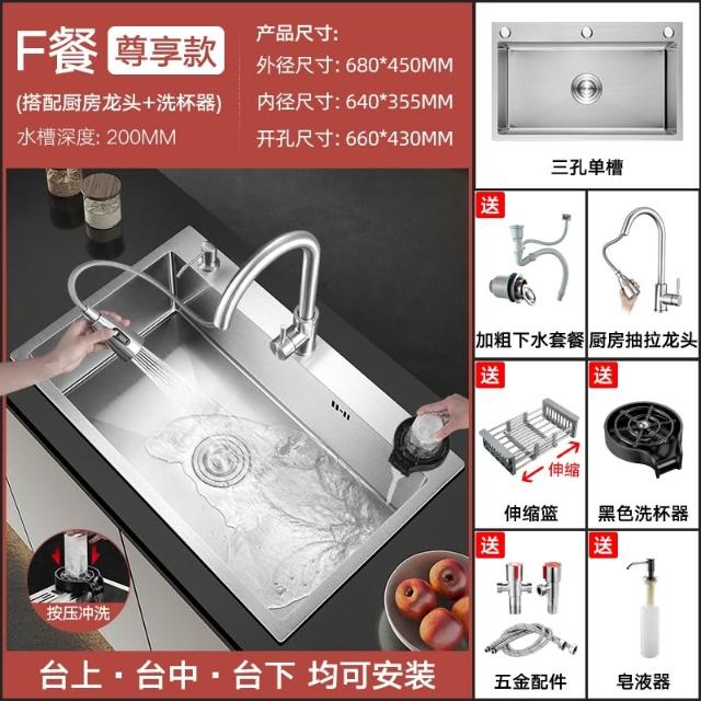 匠藝家居304不鏽鋼三孔大單槽 水槽 廚房水槽 不鏽鋼水槽 流理台 洗碗槽 手工拉絲德國工藝