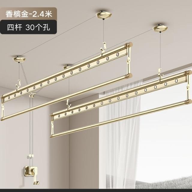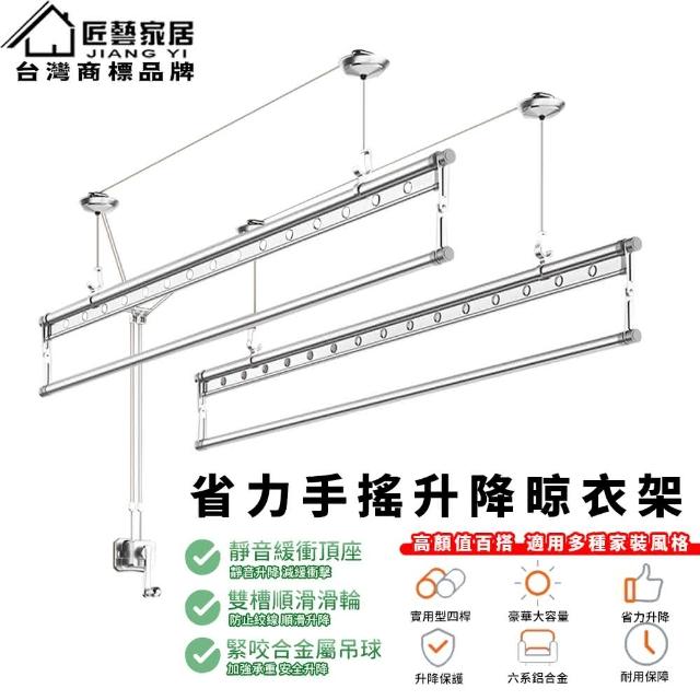 匠藝家居四桿手搖晾衣架 晾衣桿 陽台曬衣架 頂裝曬衣桿 晾衣架 304不鏽鋼繩 防水防曬不生鏽 50KG承重