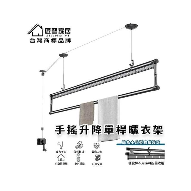 匠藝家居手動單桿升降晾衣架 家用晾衣桿 自動晾曬衣架 陽台晾衣桿 多功能曬衣架 304不鏽鋼繩 小戶型陽台