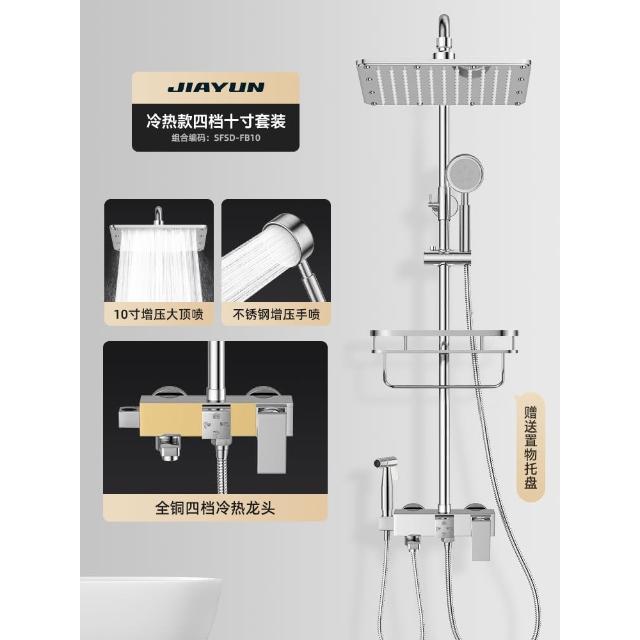匠藝家居304不鏽鋼淋浴花灑 浴室蓮蓬頭 頂噴套裝(升級特厚增壓 大方體四擋龍頭 10寸超大頂噴)