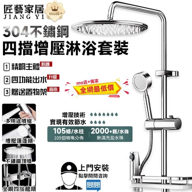 匠藝家居304不鏽鋼淋浴花灑 浴室蓮蓬頭 頂噴套裝(升級特厚增壓 大方體四擋龍頭 10寸超大頂噴)
