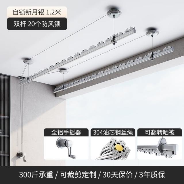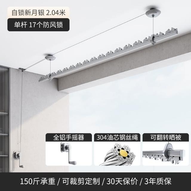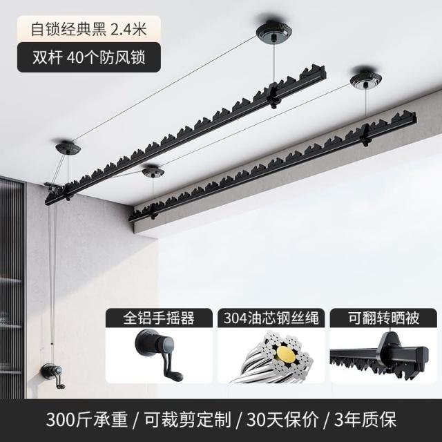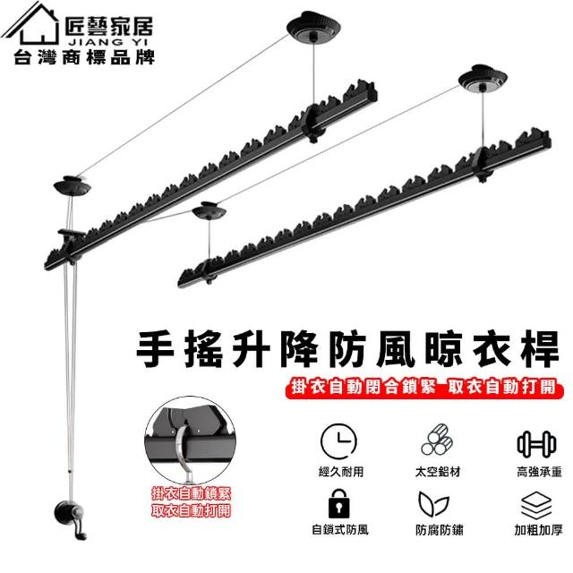 匠藝家居手搖升降防風晾衣桿 家用晾衣桿 自動晾曬衣架 陽台晾衣桿 多幹多功能曬衣架 304不鏽鋼繩 升級母嬰橫桿